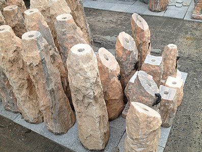 Quellsteine bis zu einer Größe von 1,80 Höhe und 1,5 Tonnen Gewicht, aber auch Brunnen in allen Größen und Ausführungen. Des weiteren Basaltstelen bis zu einer Höhe von 1,60 Metern, mit oder ohne Bohrung, Basalt Quellsteine verschiedenste Figuren für Teiche, Treppen, Terrassen wie z.B. Buddhas, Schildkröten, Giraffen usw.
